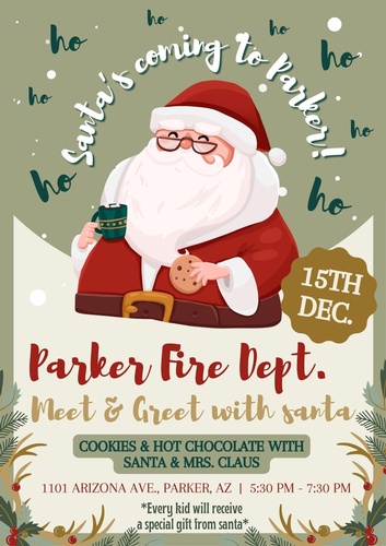 Parker Fire Department is hosting a Meet and Greet with Santa. Come enjoy cookies and milk with both Mr. and Mrs. Claus.
