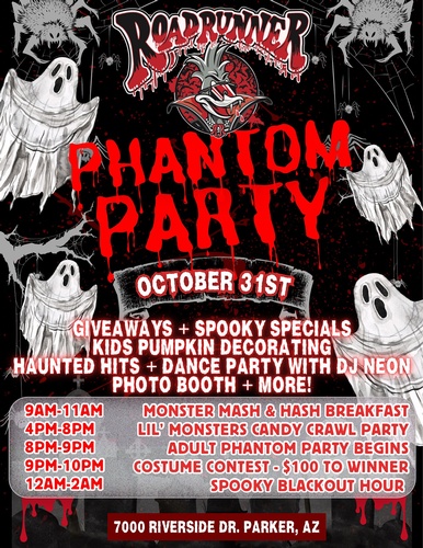 Join Road Runner for their Phantom Party with events scheduled throughout the day. Please see flyer for details